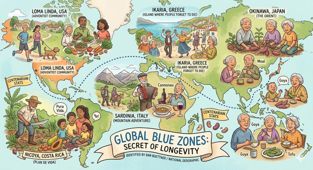 Blue Zones: Secrets of Longevity, Identified by Dan Buettner.