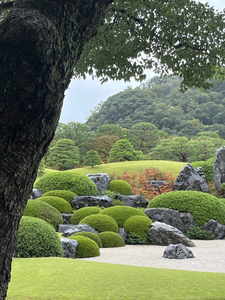 Upon arriving at Yasugi Station, we hopped on the free shuttle bus provided by the museum. The bus stop is conveniently located just outside the station to the right. A small tip: when you purchase your museum ticket (2,300 yen for adults), you’ll need to pick up a numbered ticket for your return bus, so it’s best to decide your departure time in advance. While the admission might seem a bit high, the impeccable gardens and the world-class art collection make it well worth the price.