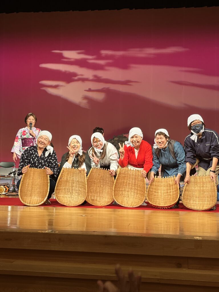 After immersing ourselves in art and nature, we walked about 200 meters to the Yasugibushi Performance Hall. We were lucky to catch a live performance of “Dojo-sukui” (Loach Scooping Dance).
