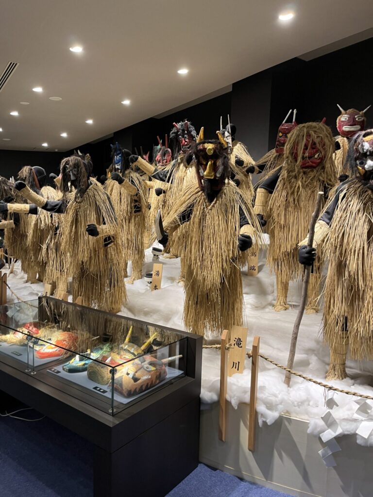 The highlight of the third day was the Oga Peninsula. I took a local train to Oga Station and used the “Namahage Shuttle” (a shared taxi) to reach the Namahage Museum area.