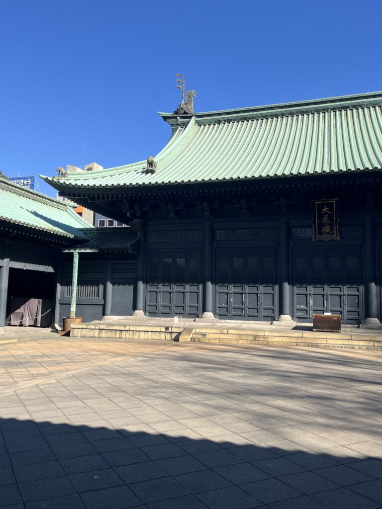 Just a 5-minute walk from the shrine’s torii gate is Yushima Seido. Crossing the road feels like stepping into a different world. Established in 1690 by Shogun Tokugawa Tsunayoshi, this Confucian temple was once the “Shoheizaka Academy,” the center of Japanese scholarship.