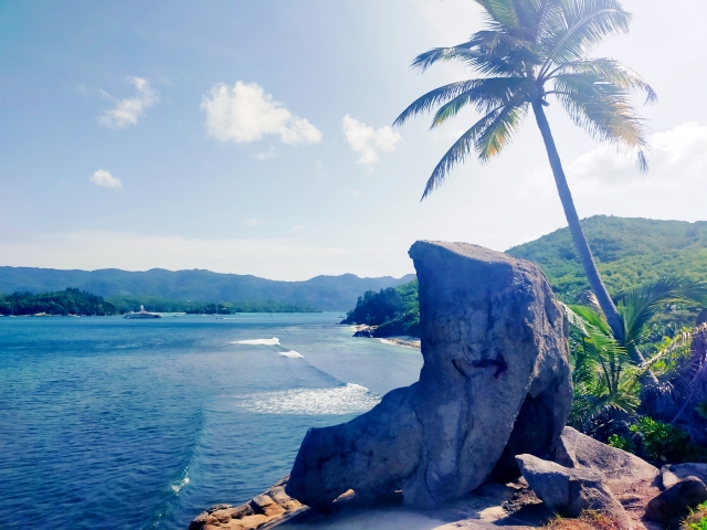 After arriving in Miyazaki City, we left our rental car at the hotel and spent a relaxing evening together. The next morning, we drove about an hour south to visit Aoshima Shrine. As you can see in the photos, the shrine sits on a tiny island (just 1.5km in circumference) that juts out into the ocean.