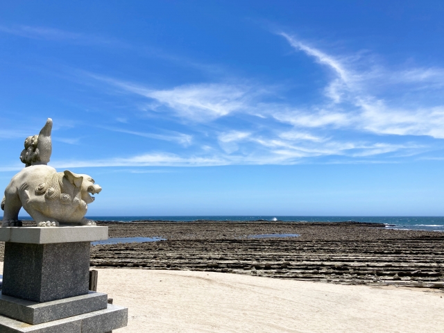 The deities enshrined here are Hikohohodemi-no-Mikoto (Yamasachihiko), Toyotamahime-no-Mikoto, and Shiotsutsu-no-Okami. They are patrons of matchmaking, safe childbirth, and maritime safety. Interestingly, it’s also where the Yomiuri Giants baseball team comes every year to pray for victory during their spring training camp.